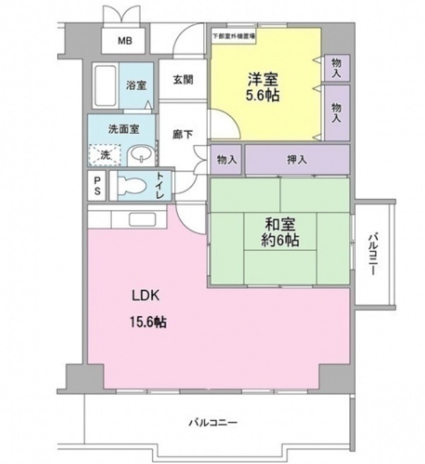 洋室 5.6畳 和室 6畳 |