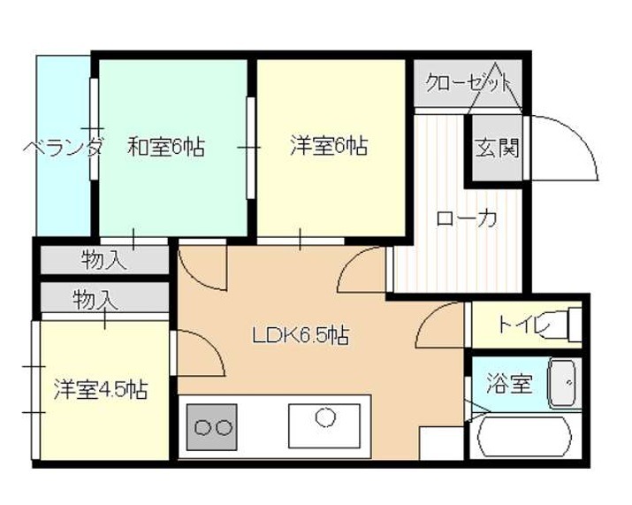 | 間取り詳細 | DK 6.5畳 、 洋室 6畳 、 洋室 4.5畳 、 和室 6畳 |