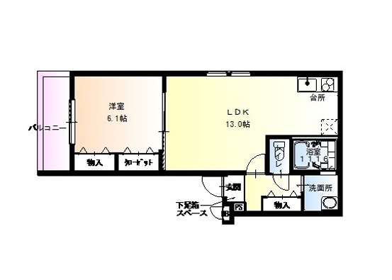 | 間取り詳細 | LDK 13畳 、 洋室 6.1畳 |