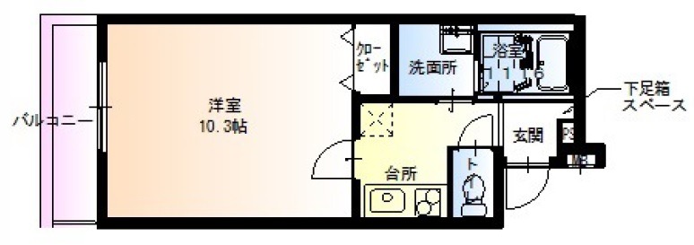 | 間取り詳細 | K 2.5畳 、 洋室 10.3畳 |