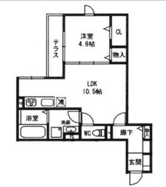 | 間取り詳細 | LDK 10.5畳 、 洋室 4.6畳 |