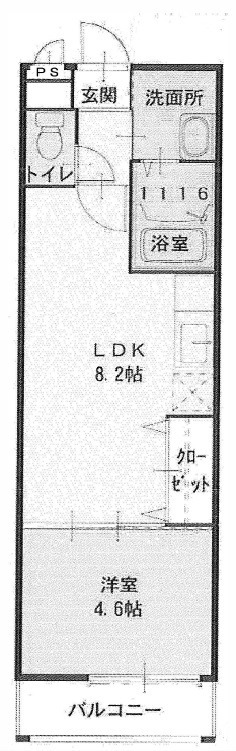 | 間取り詳細 | LDK 8.2畳 、 洋室 4.6畳 |