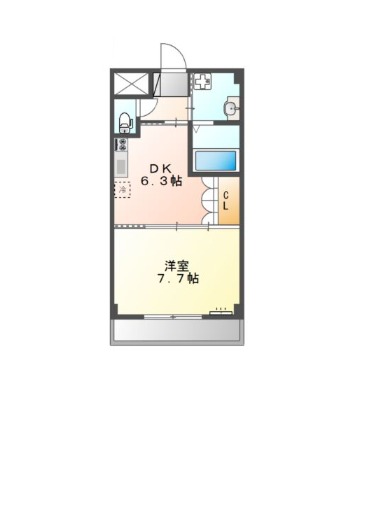 | 間取り詳細 | DK 6.3畳 、 洋室 7.7畳 |