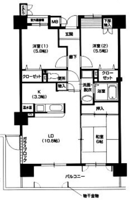 洋室 5.8畳 洋室 5.5畳 和室 6畳 |