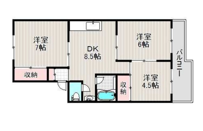 | 間取り詳細 | DK 8.5畳 、 洋室 7畳 、 洋室 6畳 、 洋室 4.5畳 |