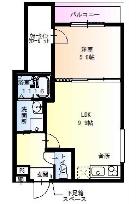 | 間取り詳細 | LDK 9.9畳 、 洋室 5.6畳 |