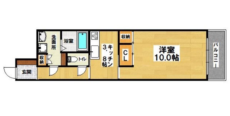| 間取り詳細 | K 3.8畳 、 洋室 10畳 |