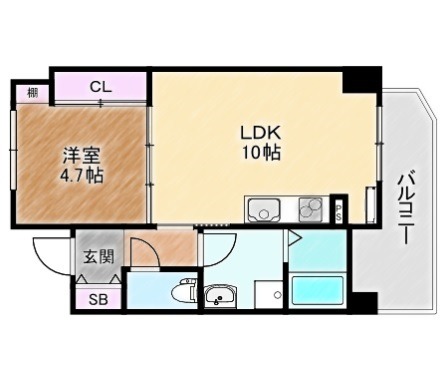 | 間取り詳細 | LDK 10畳 、 洋室 4.7畳 |