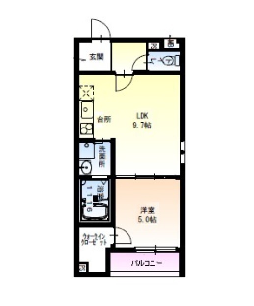 | 間取り詳細 | LDK 9.7畳 、 洋室 5畳 |