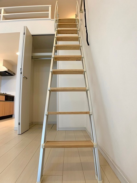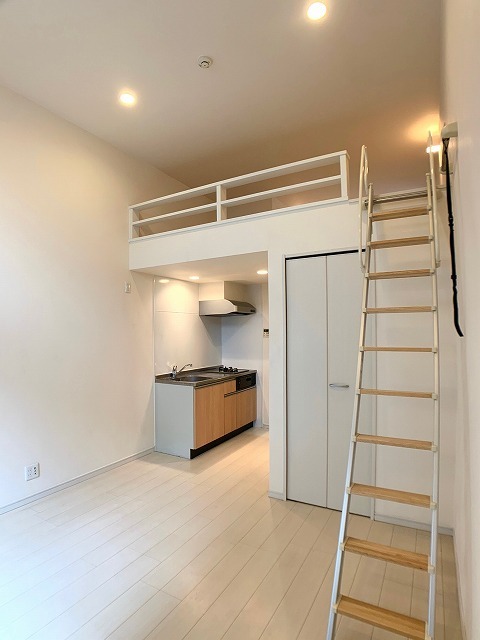 | 設備 | ガス(プロパン)、インターホン(TVモニター付き)、専用ゴミ置き場(24Hゴミ出し可)、駐輪場、日当り良好、角部屋、デザイナーズ、通風良好、フローリング、全居室フローリング、ロフト、クッションフロア、ベランダ・バルコニー、クローゼット、クローゼット数(1)、下駄箱、バス・トイレ別(別室)、シャワー、追い焚き、脱衣所、給湯、ウォシュレット、洗面台、洗面所独立、洗濯機置き場(室内)、コンロ設置済、コンロ口数(2)、コンロ種類(プロパン)、システムキッチン、エアコン、エアコン台数(1)、CATV、インターネット使用料無料 | ||