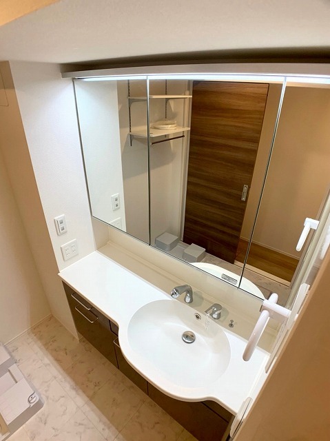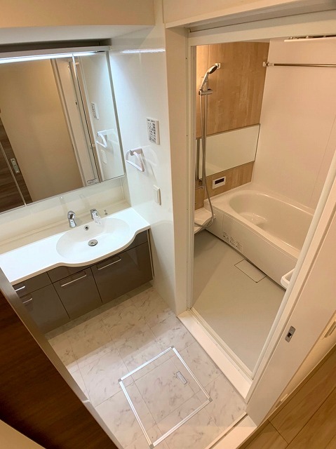 | 設備 | ガス(都市ガス)、インターホン(TVモニター付き)、カードキー、オートロック、専用ゴミ置き場(24Hゴミ出し可)、駐輪場、日当り良好、通風良好、フローリング、全居室フローリング、クッションフロア、ベランダ・バルコニー、ウォークインクローゼット、ウォークインクローゼット数(1)、下駄箱、バス・トイレ別(別室)、シャワー、追い焚き、浴室乾燥機、脱衣所、給湯、ウォシュレット、洗面台、洗面所独立、シャンプードレッサー、洗濯機置き場(室内)、システムキッチン、カウンターキッチン、エアコン、エアコン台数(1)、24H換気システム、CATV、インターネット使用料無料 | ||