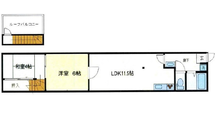 | 間取り詳細 | LDK 11.5畳 、 洋室 6畳 、 和室 4畳 |
