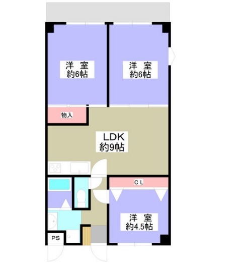 | 間取り詳細 | DK 9畳 、 洋室 6畳 、 洋室 6畳 、 洋室 4.5畳 |