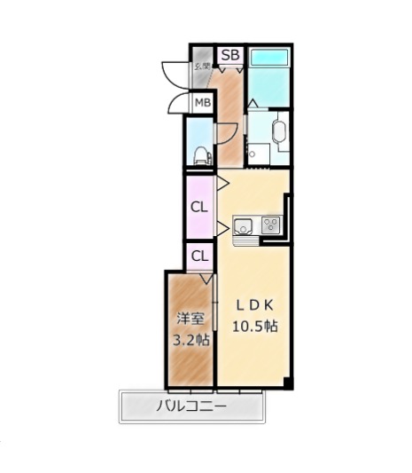 | 間取り詳細 | LDK 10.5畳 、 洋室 3.2畳 |