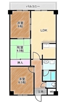 | 間取り詳細 | 和室 4.5畳 、 洋室 6畳 、 洋室 6.5畳 、 LDK 畳 |