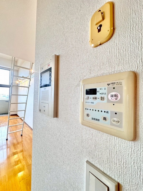 | 設備 | ガス(都市ガス)、インターホン(TVモニター付き)、防犯カメラ、オートロック、宅配ボックス、専用ゴミ置き場(24Hゴミ出し可)、駐輪場、日当り良好、眺望良好、通風良好、フローリング、全居室フローリング、ロフト、クッションフロア、照明器具、ベランダ・バルコニー、クローゼット、クローゼット数(2)、下駄箱、バス・トイレ別(別室)、シャワー、浴室乾燥機、脱衣所、給湯、3点給湯、ウォシュレット、洗面台、洗面所独立、シャンプードレッサー、洗濯機置き場(室内)、コンロ設置済、コンロ口数(2)、コンロ種類(都市ガス)、システムキッチン、エアコン、エアコン台数(1)、床暖房、24H換気システム、光ファイバー | ||