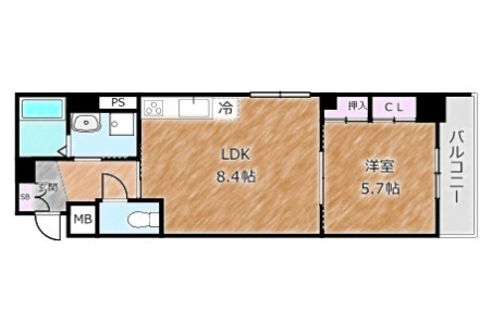| 間取り詳細 | LDK 8.4畳 、 洋室 6.7畳 |