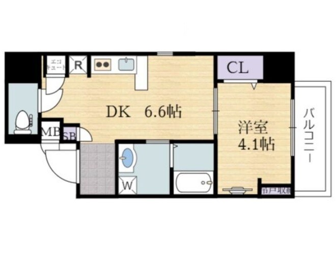 | 間取り詳細 | DK 6.6畳 、 洋室 4.1畳 |