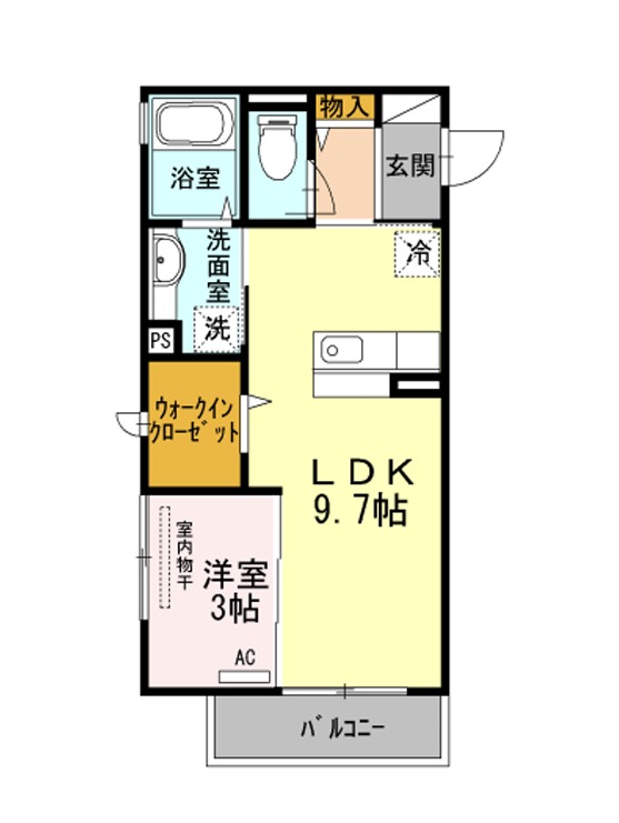 | 間取り詳細 | LDK 9.7畳 、 洋室 3畳 |