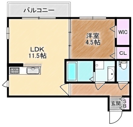 | 間取り詳細 | LDK 11.5畳 、 洋室 4.5畳 |