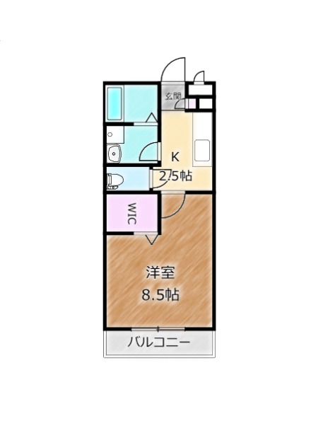 | 間取り詳細 | 洋室 8.5畳 、 K 2.5畳 |