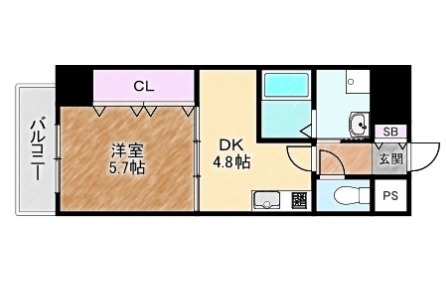 | 間取り詳細 | DK 4.8畳 、 洋室 5.7畳 |