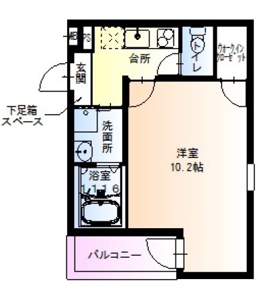 | 間取り詳細 | K 2.5畳 、 洋室 10.2畳 |