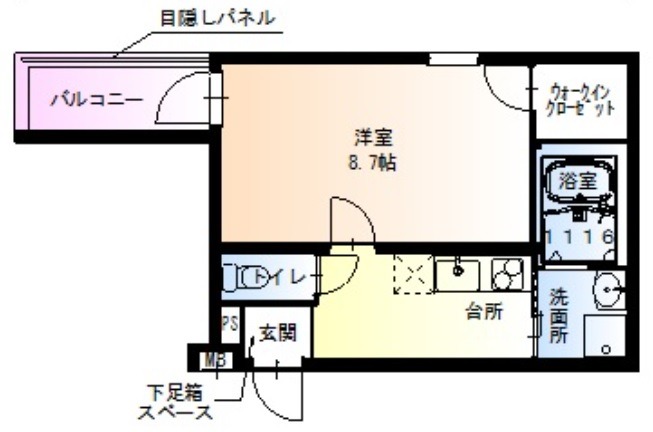 | 間取り詳細 | K 2.5畳 、 洋室 8.7畳 |