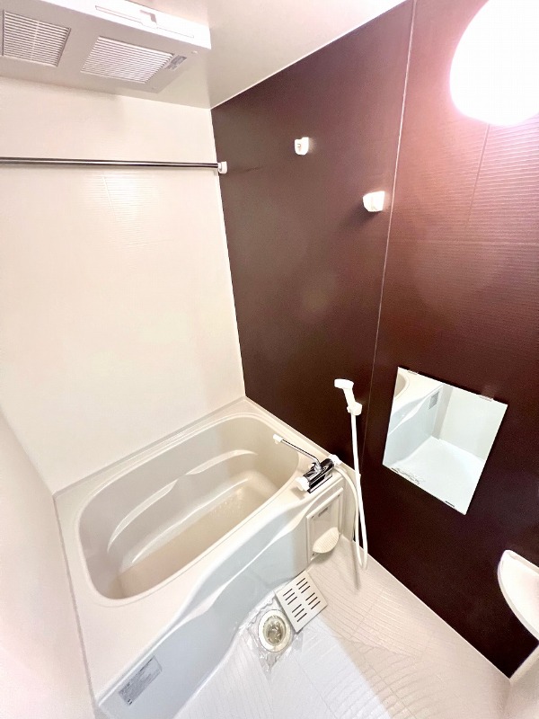 | 設備 | ガス(都市ガス)、インターホン(TVモニター付き)、防犯カメラ、オートロック、宅配ボックス、専用ゴミ置き場(24Hゴミ出し可)、駐輪場、通風良好、フローリング、全居室フローリング、クッションフロア、照明器具、ベランダ・バルコニー、ウォークインクローゼット、ウォークインクローゼット数(1)、バス・トイレ別(別室)、シャワー、浴室乾燥機、脱衣所、給湯、ウォシュレット、洗面台、洗面所独立、洗濯機置き場(室内)、コンロ設置済、コンロ口数(2)、コンロ種類(IH)、システムキッチン、エアコン、エアコン台数(1)、24H換気システム、CS、CATV、インターネット使用料無料 | ||
