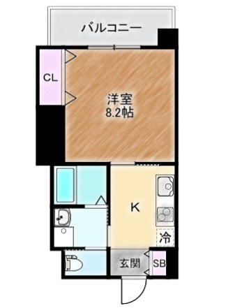 | 間取り詳細 | K 2.5畳 、 洋室 8.2畳 |