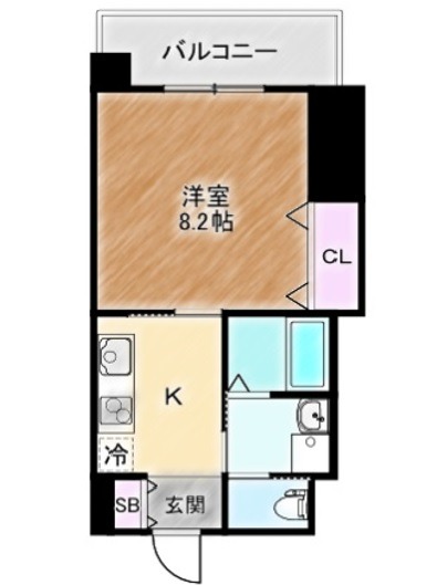 | 間取り詳細 | K 2.5畳 、 洋室 8.2畳 |