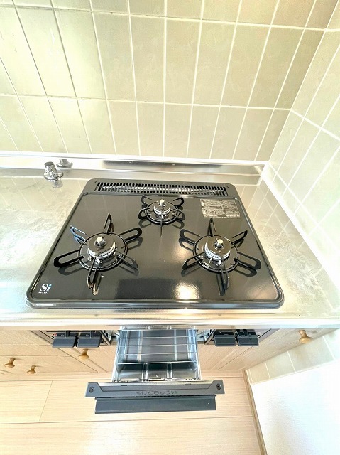 グリル付きの3口コンロで段取り良くお料理が出来ます♪