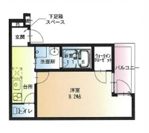 | 間取り詳細 | K 2.5畳 、 洋室 9.2畳 |