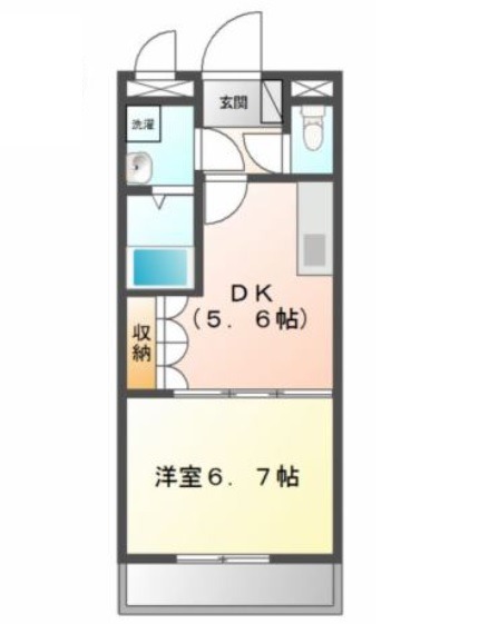 | 間取り詳細 | DK 5.6畳 、 洋室 6.7畳 |