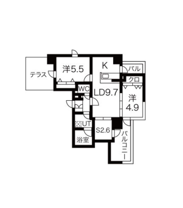 | 間取り詳細 | LDK 9.7畳 、 洋室 5.5畳 、 洋室 4.9畳 |