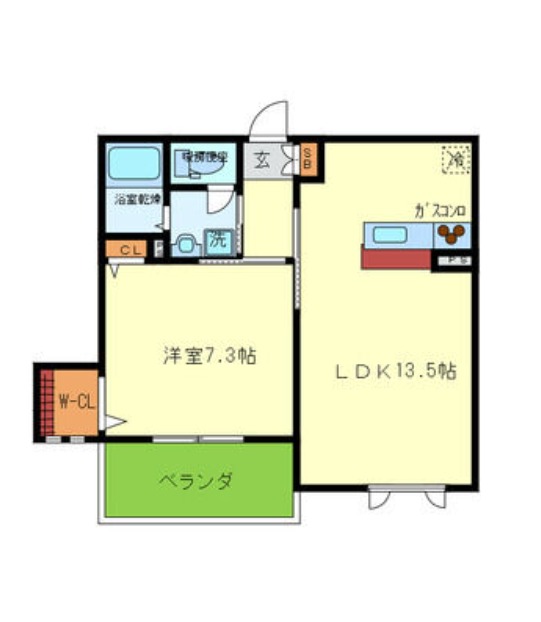 | 間取り詳細 | LDK 13.5畳 、 洋室 7.3畳 |