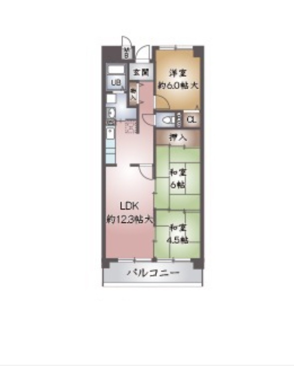 | 間取り詳細 | LDK 12.3畳 、 和室 4.5畳 、 和室 6畳 、 洋室 6畳 |