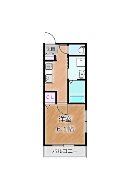 | 間取り詳細 | K 2.5畳 、 洋室 6.1畳 |