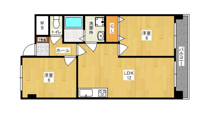 | 間取り詳細 | LDK 12畳 、 和室 6畳 、 洋室 6畳 |