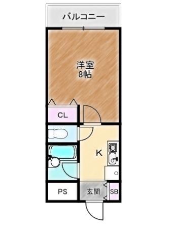 | 間取り詳細 | K 2.5畳 、 洋室 8畳 |