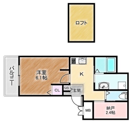 | 間取り詳細 | K 2.5畳 、 洋室 6.1畳 |