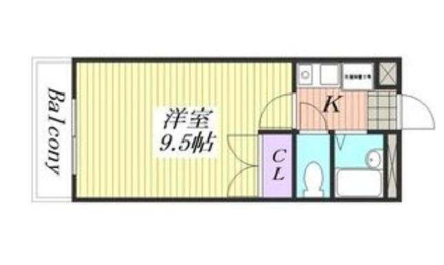 | 間取り詳細 | K 1.5畳 、 洋室 9.5畳 |