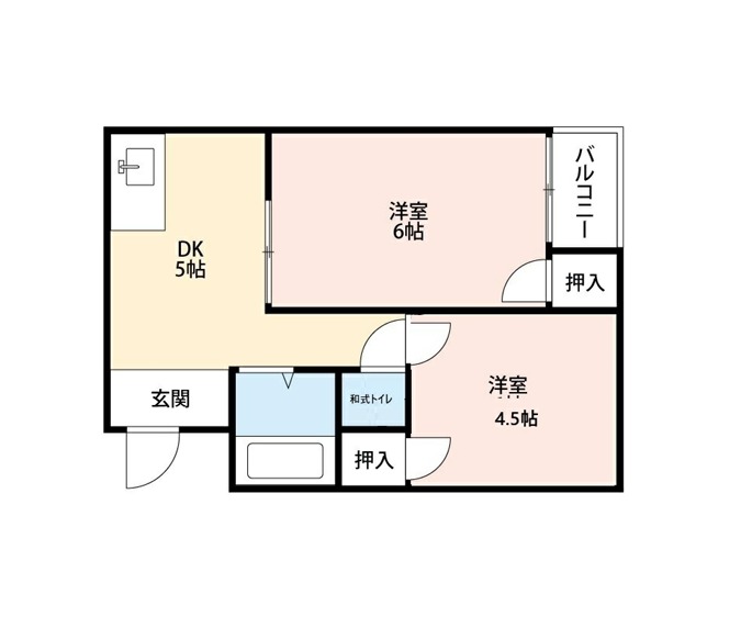 | 間取り詳細 | 洋室 6畳 、 DK 5畳 、 和室 4.5畳 |