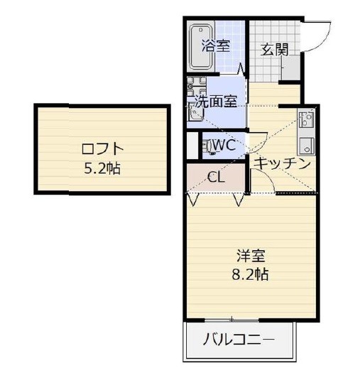 | 間取り詳細 | K 2.5畳 、 洋室 8.2畳 |