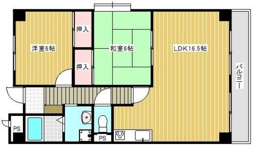 | 間取り詳細 | LDK 16.5畳 、 洋室 6畳 、 和室 6畳 |