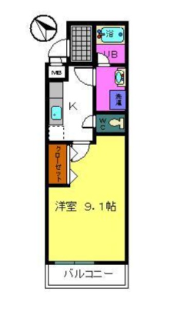 | 間取り詳細 | K 2.5畳 、 洋室 9.1畳 |