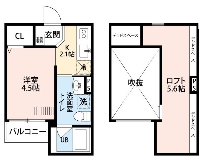 | 間取り詳細 | K 2.1畳 、 洋室 4.5畳 |