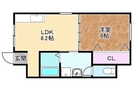 | 間取り詳細 | LDK 8.2畳 、 洋室 6畳 |