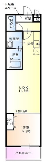| 間取り詳細 | LDK 11.5畳 、 洋室 5.2畳 |