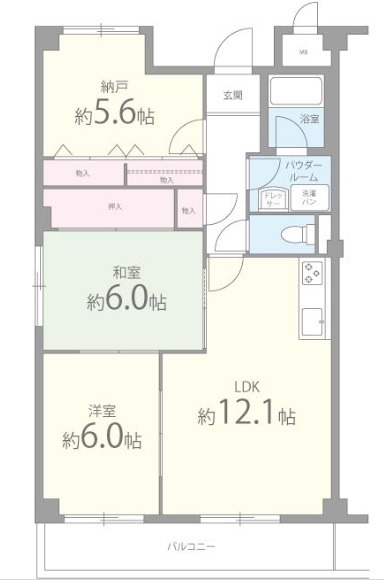 | 間取り詳細 | LDK 12.1畳 、 洋室 6畳 、 和室 6畳 |